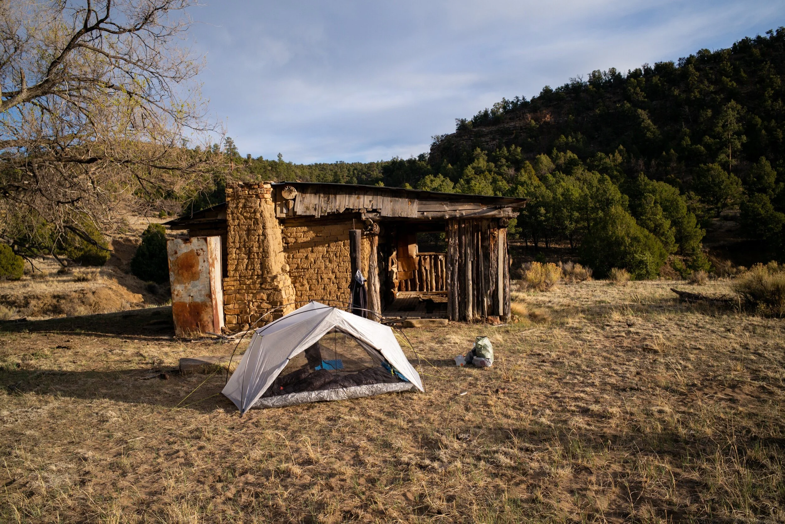 The road quickly turned to a sandy mess. But the wind died down, and before I knew it (eh, not really) I had reached the old house. A clay settlers stable, I found refuge from any impending rain that may come about. However, once I arrived, I looked back to evaluate the incoming storm, and noticed that the storm had diverted east, and the sun had begun to shine a bit. I setup my tent and cooked a big meal to fill my hungry belly after my first 30+ mile day on the CDT.